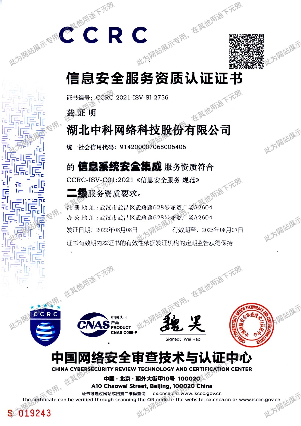 • CCRC 信息系統(tǒng)安全服務二級資質
